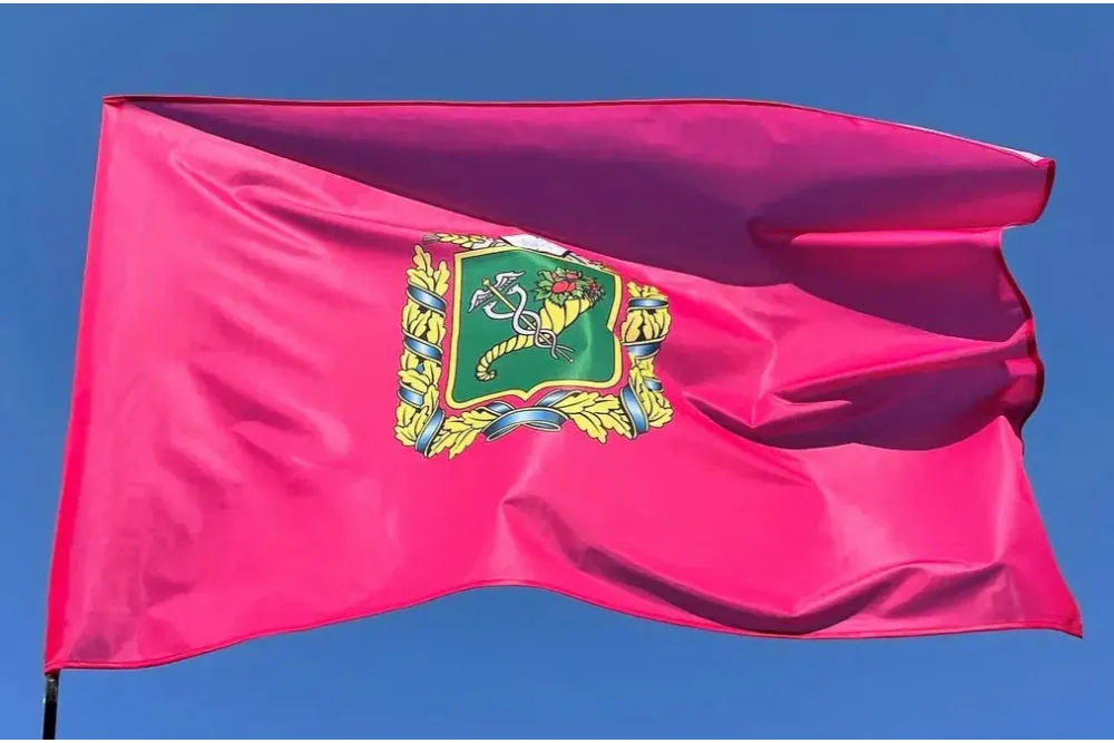 Прапор Харківської області — це яскравий символ Слобожанщини, який підкреслює історичну спадщину та самобутність регіону. Полотно виконане у насиченому зеленому кольорі із зображенням герба області по центру. На гербі розміщені ріг достатку з плодами та кадуцей — символи добробуту, розвитку, науки й торгівлі. Такий дизайн уособлює родючість краю, економічний потенціал та багату культурну традицію Харківщини.