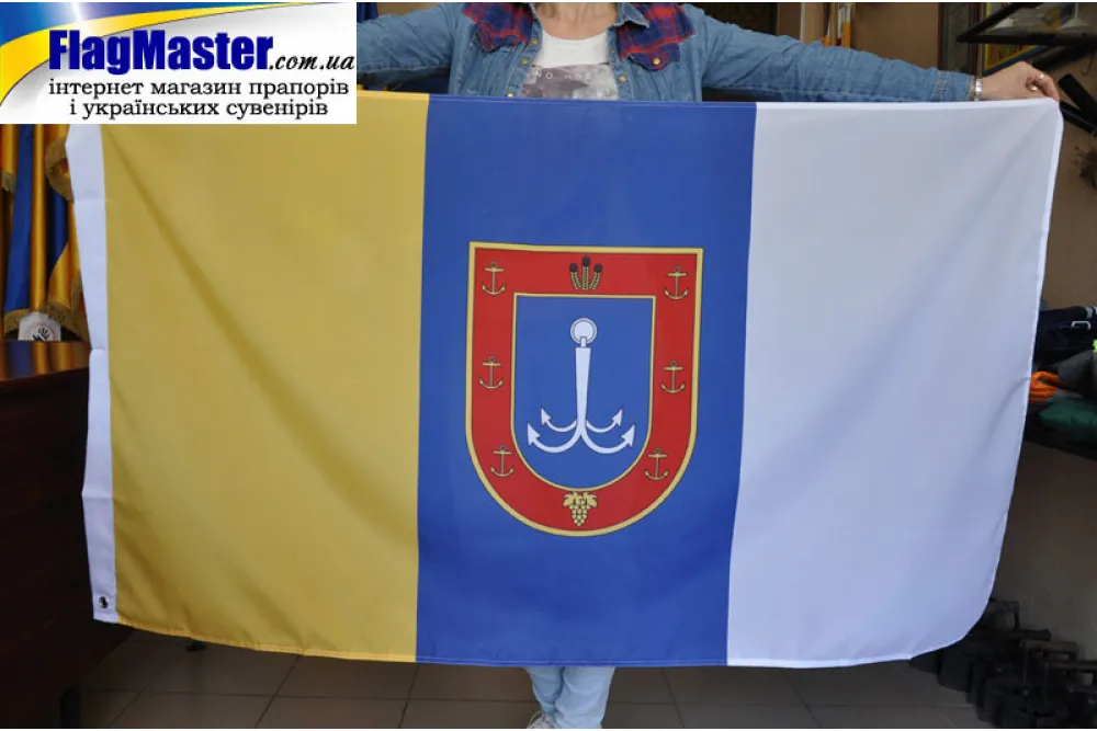 Купити прапор Одеської області в інтернет-магазині FlagMaster з доставкою по Україні за ціною від виробника. Якщо необхідний інший розмір, то ви його можете замовити і ми вам його надрукуємо.